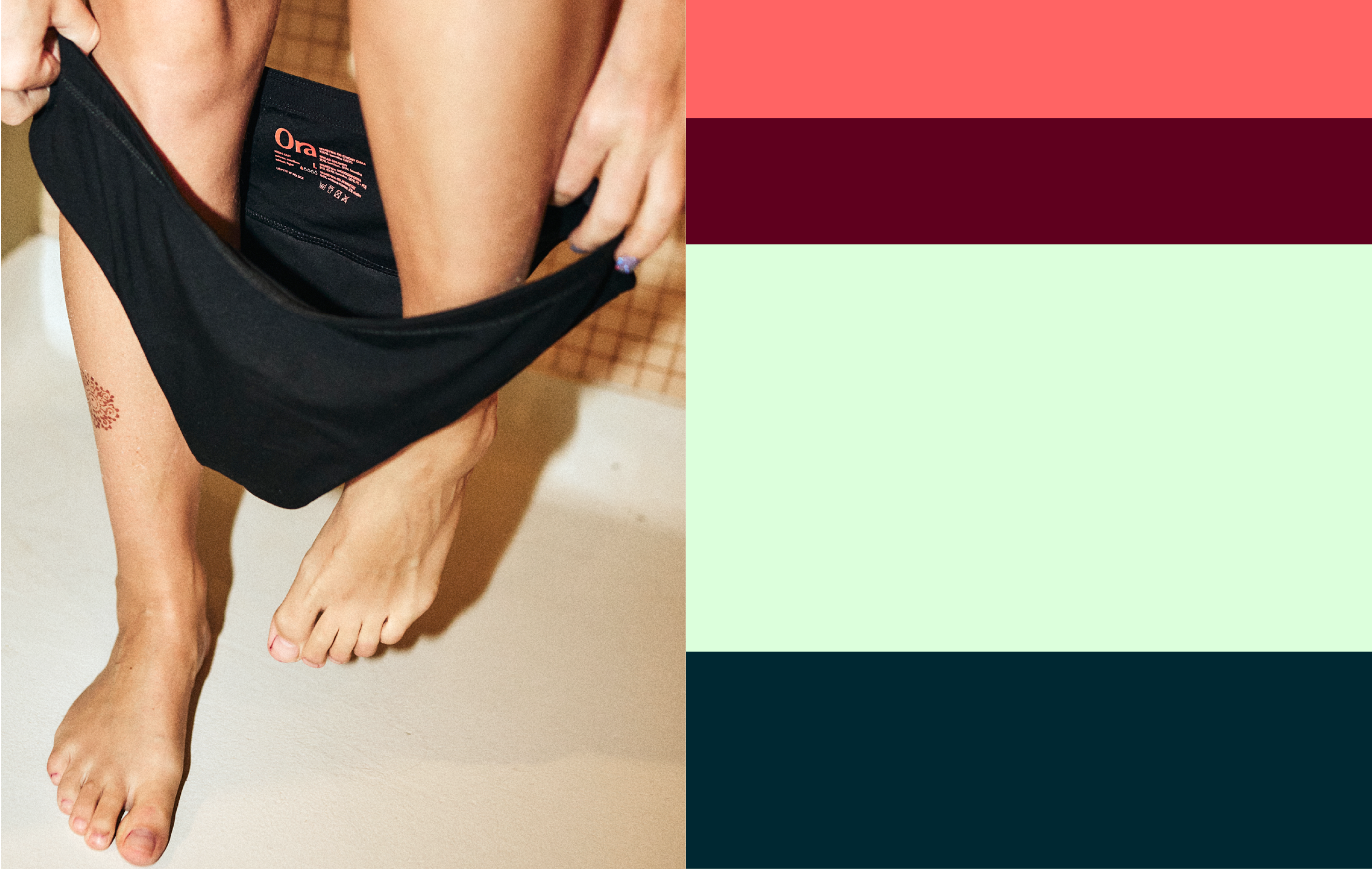 The brand's visual identity tells a story of femininity, naturalness, and being true to oneself. Ora is menstrual underwear and an educational service, but that's just the beginning of what this brand will offer women.
